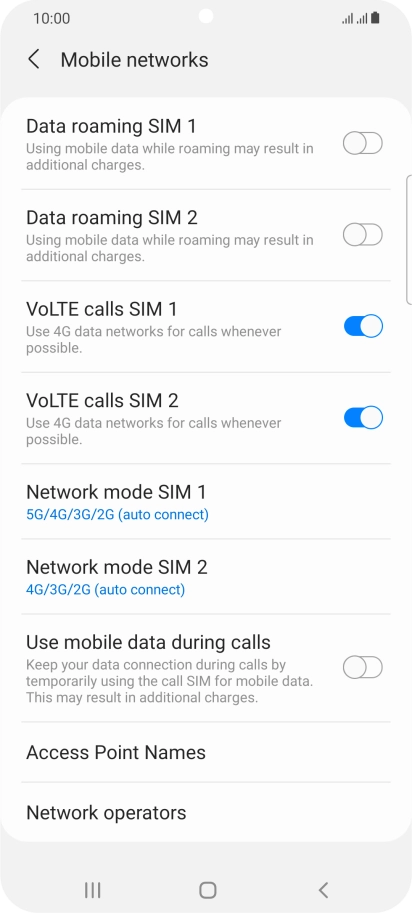 Press the indicator next to "Data roaming ‹SIM›" to turn the function on or off.