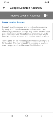 If you press the indicator next to "Improve Location Accuracy" to turn off the function, your phone can find your exact position using the GPS satellites but it may take longer as there is no access to supplementary information from the mobile network or nearby Wi-Fi networks.