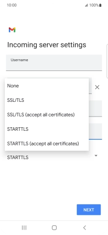 Press the field below "Server" and key in the name of your email provider's incoming server.