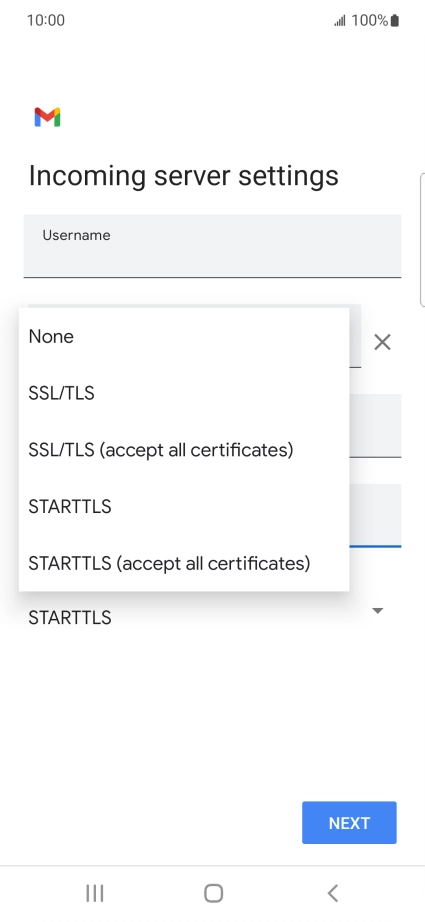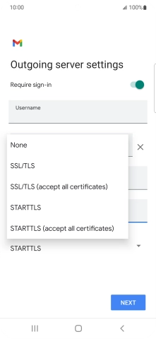 Press the field below "Username" and key in the username for your email the email provider's outgoing server.