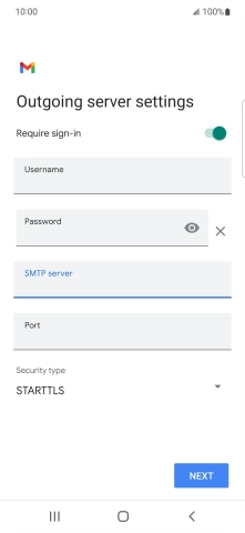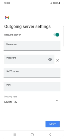 Press the indicator next to "Require sign-in" to turn the function on or off. Please note that if you're using Vodafone's outgoing server, turn off SMTP authentication and leave the username and password fields empty.