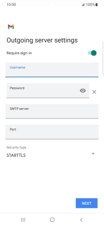 Press the indicator next to "Require sign-in" to turn the function on or off. Please note that if you're using Vodafone's outgoing server, turn off SMTP authentication and leave the username and password fields empty.