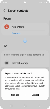 Press Export contacts.