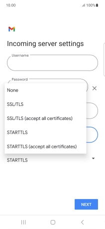Press the field below "Server" and key in the name of your email provider's incoming server.