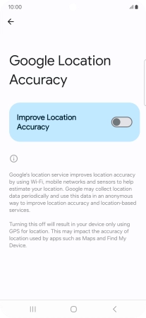 If you press the indicator next to "Improve Location Accuracy" to turn off the function, your phone can find your exact position using the GPS satellites but it may take longer as there is no access to supplementary information from the mobile network or nearby Wi-Fi networks.