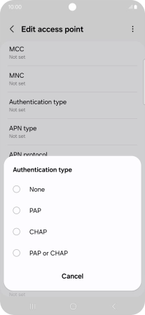 7. Enter APN type