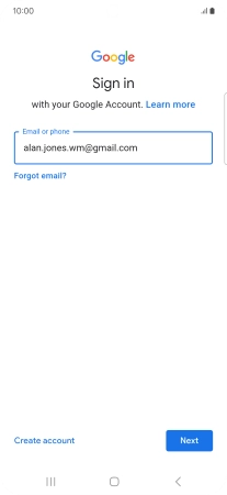 If you don't have a Google account, press Create account and follow the instructions on the screen to create an account.