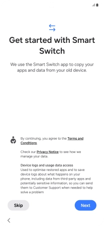 You can transfer the contents of another phone to your phone when it's activated for the first time and after a factory reset. When this screen is displayed, your phone is ready to transfer contents from another phone.
