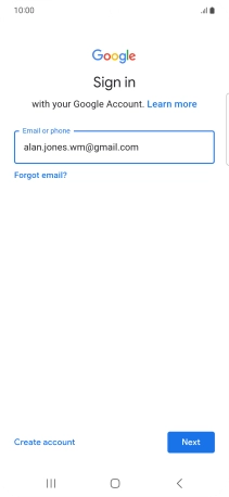 If you don't have a Google account, press Create account and follow the instructions on the screen to create an account.