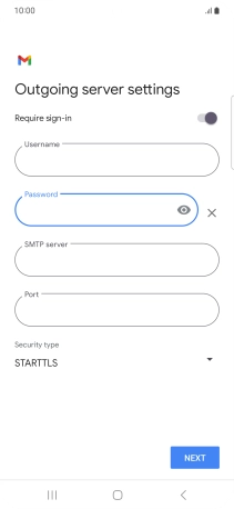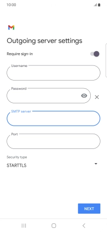 Press the indicator next to "Require sign-in" to turn the function on or off. Please note that if you're using Vodafone's outgoing server, turn off SMTP authentication and leave the username and password fields empty.