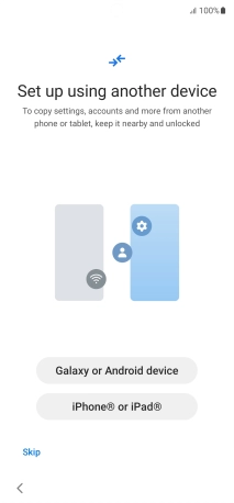Press the required setting to transfer content from another device or press Skip.