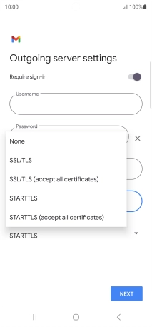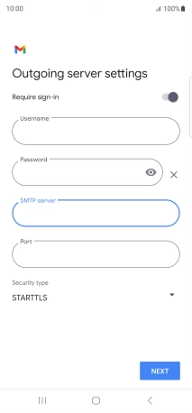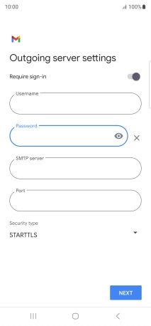 Press the indicator next to "Require sign-in" to turn the function on or off. Please note that if you're using Vodafone's outgoing server, turn off SMTP authentication and leave the username and password fields empty.