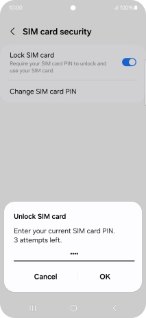 Press the indicator next to "Lock SIM card" to turn the function on or off.
