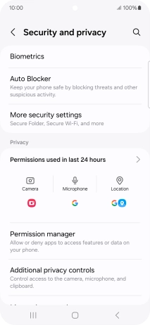 Press Security and privacy.