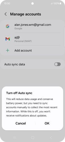 Press the indicator next to "Auto sync data" to turn the function on or off.