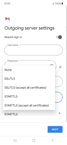Press the field below "Username" and key in the username for your email the email provider's outgoing server.
