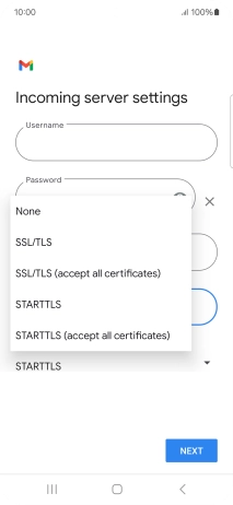 Press the field below "Server" and key in the name of your email provider's incoming server.