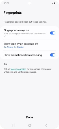 Follow the instructions on the screen to create the phone lock code using your fingerprint.