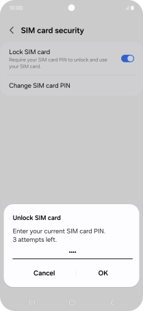 Press the indicator next to "Lock SIM card" to turn the function on or off.