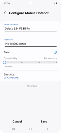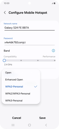 Press WPA3-Personal to password protect your Wi-Fi hotspot.
