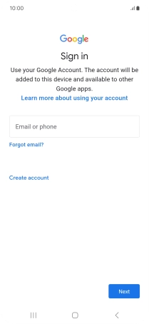 If you don't have a Google account, press Create account and follow the instructions on the screen to create an account.