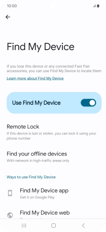 Press the indicator next to "Use Find My Device" to turn on the function.