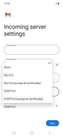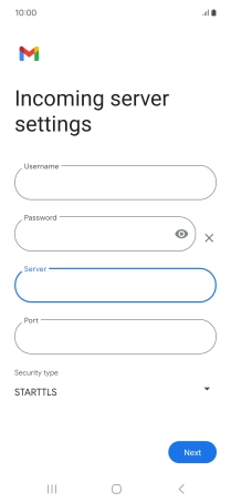 Press the field below "Server" and key in the name of your email provider's incoming server.