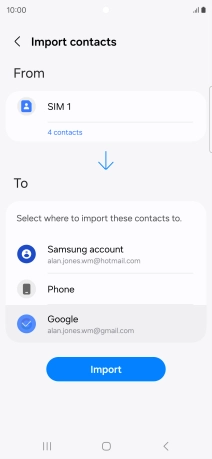 Copy contacts between your SIM and your Google account on your Samsung Galaxy S24 Ultra Android 14