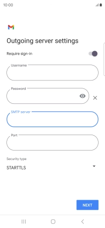 Press the indicator next to "Require sign-in" to turn the function on or off. Please note that if you're using Vodafone's outgoing server, turn off SMTP authentication and leave the username and password fields empty.