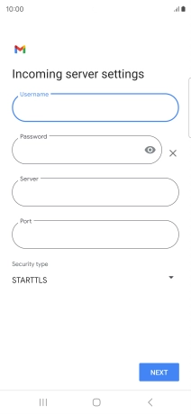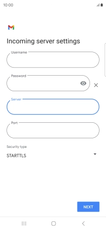 Press the field below "Server" and key in the name of your email provider's incoming server.