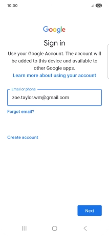 If you don't have a Google account, press Create account and follow the instructions on the screen to create an account.