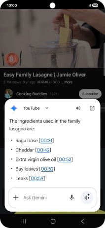 Using Gemini, you can ask questions about the content of a YouTube video.