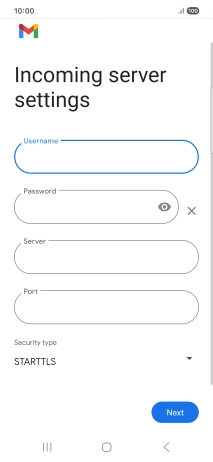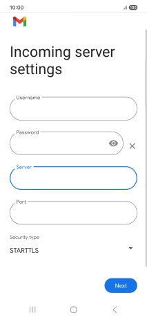 Press the field below "Server" and key in the name of your email provider's incoming server.