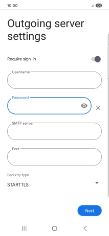 Press the field below "Password" and key in the password for your email provider's outgoing server.