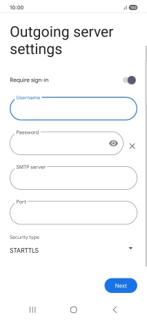 Press the field below "Username" and key in the username for your email the email provider's outgoing server.