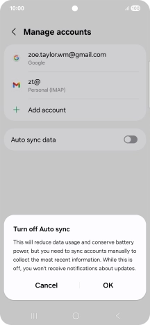 Press the indicator next to "Auto sync data" to turn the function on or off.