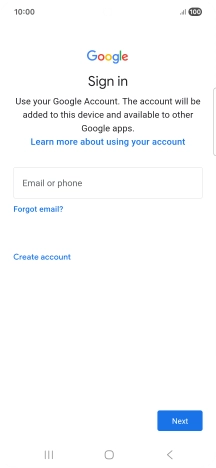 If you don't have a Google account, press Create account and follow the instructions on the screen to create an account.