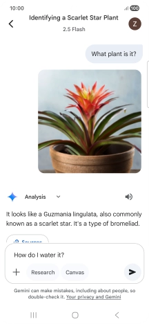 Press the camera icon and point the camera lens at the required subject or object to ask questions about it.