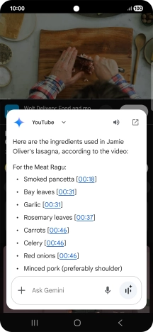 Using Gemini, you can ask questions about the content of a YouTube video.