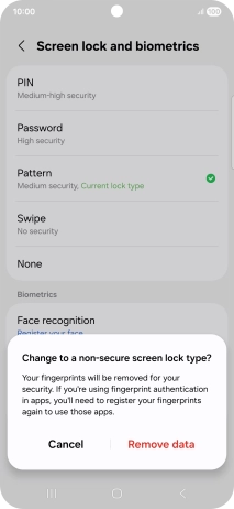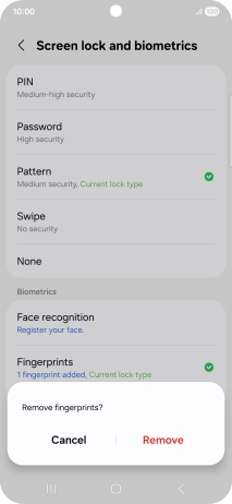 Press Screen lock and biometrics and key in the additional phone lock code you created earlier.