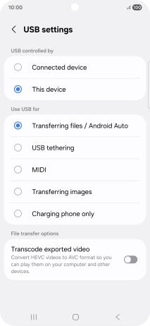 2. Choose setting for USB connection