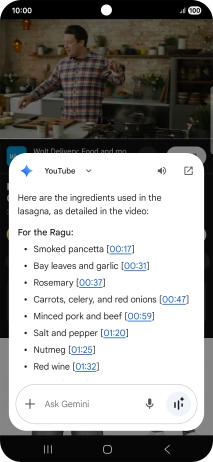 Using Gemini, you can ask questions about the content of a YouTube video.