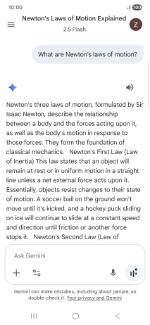 The answer from Gemini to your question is displayed.