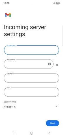 If this screen is displayed, you email account has been recognised and set up automatically. Follow the instructions on the screen to key in more information and finish setting up your phone.