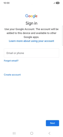 If you don't have a Google account, press Create account and follow the instructions on the screen to create an account.