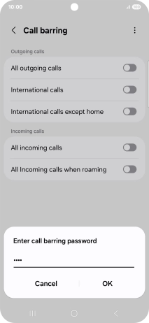 Key in your barring password and press OK. The default barring password is 0000.