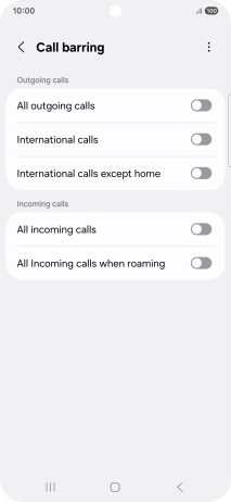 Press the indicator next to the required barring type to turn the function on or off.
