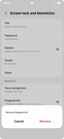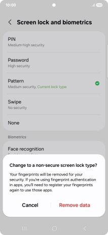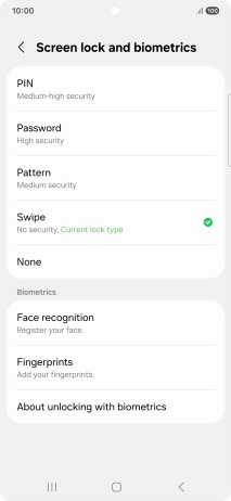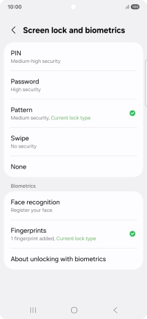 Press Screen lock and biometrics and key in the additional phone lock code you created earlier.