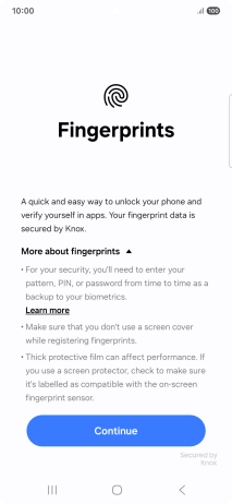 Follow the instructions on the screen to create the phone lock code using your fingerprint.