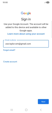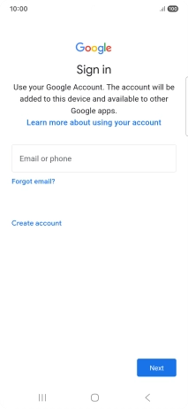 If you don't have a Google account, press Create account and follow the instructions on the screen to create an account.